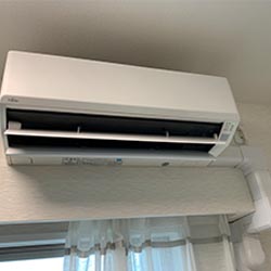 - エアコン設置場所周辺に作業スペースの確保をお願い致します。新旧宅で電気を使用できる状態にし、リモコン含め付属品をご用意ください。※電気の契約をエアコン工事前に解約する方が稀にいますが、電気が使用できないと冷媒ガス回収できないため取り外し工事をお断りします。