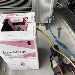 - エアコンを取り外す時はポンプダウンという作業で室外機に冷媒ガスを戻すことができます。エアコンが壊れている場合にはポンプダウンできないこともありますのでご相談ください。